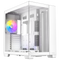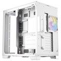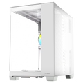 The Antec C8 ARGB Full Tower case features a panoramic 270° view through seamless glass panels, designed for showcasing high-end components. It supports extensive cooling options, including multiple 360mm radiators and up to 10 fans. The case includes pre-installed ARGB fans, offers dual-chamber design for efficient cooling, and has ample space for E-ATX motherboards and large GPUs.