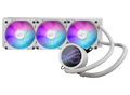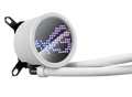 Go cooler than cool with the Ryujin III White Edition. Its pristine frame houses an expansive 3.5-inch LCD screen that displays live system stats, animated GIFs, or even your own custom artwork. Underneath, a new 8th Gen Asetek pump quietly keeps the latest processors from Intel and AMD cool, while an embedded Axial-tech fan helps control motherboard VRM temps. And the coolant within flows through 400mm of reinforced tubing and a higher capacity radiator chilled by two magnetic ROG 120 mm ARGB fans, making installation and customization a snap.