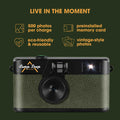 Screen-free and digital, this easy-to-use camera lets you simply point and shoot. It captures up to 500 photos per charge, features three built-in flash modes, and is both rechargeable and reusable, with an 8MP sensor for clear, vibrant images.