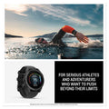 Fenix E smartwatch for athletes/adventurers features a bright 1.3 AMOLED display and stainless-steel bezel.