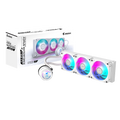360mm radiator for efficient cooling performance Compatible with Intel and AMD sockets for versatile use High-performance AIO (all-in-one) liquid cooling system RGB lighting for customizable aesthetics Three 120mm fans for optimal airflow and reduced noise Durable pump design for long-lasting operation Easy installation with pre-filled coolant and no maintenance required Enhanced cooling surface area for improved heat dissipation Reinforced tubing for increased durability and flexibility Software control for fan speed and lighting effects |