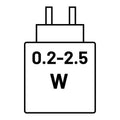 - The required output of a suitable charging device is 0.2W minimum and 2.5W maximum.