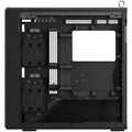 - Mid-tower PC case with semi-open frame design and tempered glass window