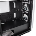 Aside from the pre-installed fans, users are also free to install two more 120/140 mm fans in the roof, which is where a magnetic dust filter can be found installed on the honeycomb-style mesh. A full tempered glass hinged side panel shows off your system build, and is easily opened & closed using the pull tab. Magnets are used to keep the side panel in place when shut.