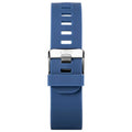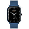 This watch features a rectangle dark blue plastic case housing a 1.8 inch full touch screen. Functions include Bluetooth calling, 22 sports modes, blood oxygen measurement, step tracker and sleep tracking. The watch is fastened with a dark blue silicone strap with quick release spring bars and comes with a 2 year guarantee.