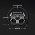 Logitech G920 Driving Force is the definitive sim racing wheel for the latest Xbox One and PC titles, featuring realistic dual-motor force feedback and helical gearing for quiet, smooth steering. On-wheel controls and paddle shifters are easy to access so you can make crisp, precise gear transitions. The separate pedal unit gives you natural, responsive control.