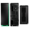 The I/O panel is hidden behind a flap and the power button is located on the lid. With Phanteks choice of front HDMI allowing the easy connection of VR glasses and a USB 3.1 Type C port the Enthoo Elite sets new standards. Four further USB 3.0 ports, four audio ports as well as RGB-LED lighting controls round out the generous choice of connections. The tower's LEDs can be controlled with the RGB-LED controllers, located on the upper right edge, the front-right and bottom edge, as well as the bottom edge of the left side panel.