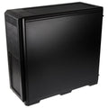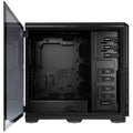 The two-part tempered glass side window of the Enthoo Pro offers a superb view of built-in water-cooling systems, LED fans or simply RGB strips. The spacious interior offers plenty of room for high-end hardware. The removable plastic front has a brushed aluminium look and the slanted sides of the case give it a sleek aesthetic. At the top are the slots for up to three 5.25" optical drives or controllers for fans or RGB lighting, all of which can be installed without tools. Phanteks directly incorporates a quiet 140 mm fan for proper case ventilation.Phanteks also incorporates two HDD cages to allow three 3.5" drives to be installed without the need for tools, alternatively three 2.5" drives can also be mounted. Two additional 2,5" drives can be mounted on the outer support for the HDD cages. Two further 2.5" drives can be mounted to the optionally available brackets which can be installed on the reverse of the motherboard tray. This motherboard tray is also not only compatible with E-ATX boards but also SSI CEB server-grade boards. Both HDD cages can be removed in order to make more space for larger graphics cards, up to 472 mm in length rather than 347 mm. The Phanteks Enthoo Pro offers a total of eight expansion slots.