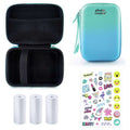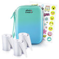 Store and protect your Photo Creator Instant Camera in this stylish teal-blue gradient case. Ideal for young photographers and kids aged 8 years and over, this practical accessory keeps your camera and supplies together during creative adventures. The shockproof design provides protection while on the go, and it comes with three paper rolls for printing over 200 more pictures. Customise your photos with the included sticker sheet. Add personal touches to your instant prints. Or use the stickers to decorate the case itself.