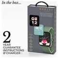 Radley Series 32 Smart watch allows you to stay connected with the convenience of hands-free calling, to make and receive calls directly from your watch anytime, anywhere. The Series 32 has a generous 1.8 display with a variety of interchange dials so you can personalise or customise by using your own photo. The Series 32 also offers an extensive range of lifestyle & wellness features, including step count, heart rate monitor, blood oxygen, cycle tracking, calories, sleep analysis, multiple sports tracking and more.