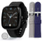 - Accessories included: 2 x additional straps in blue and grey, including charger.