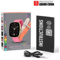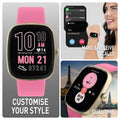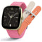 - Accessories included: 2 x additional straps in cream and coral, including charger.