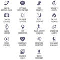 Distance and steps tracking, hydration and sedentary reminders, breathing exercises.