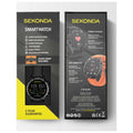 This watch comes with a black silicone quick release strap and an extra orange silicone quick release strap and has a water resistance rating of IP68. Comes with 60cm micro USB magnetic charging cable. 2 year guarantee.