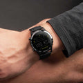 This Active Plus Smart Watch features a black metal case with a 1.5 inch end to end, fully interactive touch screen display with an always on display feature. Features include step/distance/calorie tracker, 14 sports modes, heart rate monitor, sleep monitor, blood oxygen monitoring, message notifications, weather display, music player with battery life of upto 10 days and lots more features.
