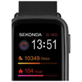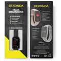 The Track Smart Watch has a rectangular black plastic case housing a 1.47 TFT display, fastened with a quick release black silicone strap. Features include steps/ distance/ calorie counter, monitor your sleep, heart rate, blood oxygen and access 8 sports modes. With even more features including 17 language options, an alarm feature and notification updates, be Smart with your time.