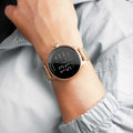 The watch is fastened with a 16mm rose gold plated stainless steel mesh quick release bracelet and has a water resistance rating of IP67. Comes with 60cm micro USB magnetic charging cable. 2 year guarantee.