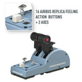 The TCA Officer Pack Airbus Edition includes the TCA Sidestick Airbus Edition and the TCA Quadrant Airbus Edition, for a complete civil aviation experience. Ergonomic replicas of the Airbus sidestick and throttle quadrant, the TCA Officer Pack Airbus Edition is composed of products that are iconic on every level: the replica design of each device mirrors the original shapes and colours, with incredibly authentic and lifelike feel on the different components.