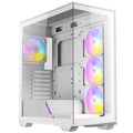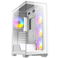 The Antec C3 ARGB White PC case features 270° full-view tempered glass panels, pre-installed ARGB PWM fans, and extensive cooling support for up to eight 120mm fans. It offers versatile configurations with top, side, and rear radiator support, ample cable management, and an I/O panel with USB 3.0 and Type-C ports. Ideal for showcasing and protecting high-performance builds.