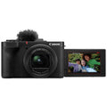 PowerShot V1 meets the growing demand for a portable camera with advanced video features. Sitting above the PowerShot V10 and below EOS R50 V, PowerShot V1 is a powerful and pocketable camera with an ultra-wide built-in lens and a large 1.4 sensor, unlimited 4K recording, and advanced audio features. Aimed at vloggers, influencers, and live-streamers, it balances portability with performance, while offering flexibility and simplicity with a vari-angle touchscreen and integrated lens. This vlogger kit includes a memory card and a Canon tripod.