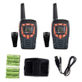 With a range of up to 10 km (6.2 miles) this Cobra walkie talkie offers excellent communication when hiking, climbing or cycling. This model is water-resistant with a built-in LED Flashlight and rubberised grips that provide enhanced functionality to keep you on the go. The VibrAlert notifies you of incoming transmissions with enhanced vibrating feedback. Voice-activated transmission frees hands for other tasks. A total of 1963 channel combinations are available when the 16 channels are combined with the 121 privacy codes (38 CTCSS/104 DCS).