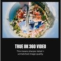MAX Never Misses With 8K 360 Video: Never aim, but capture everything around you in amazing 8K 360 video. Just hit the shutter button to start recording. There's no need to frame the shot or think about where your camera's positioned. MAX2 will get it all in stunning detail.