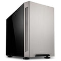 Lian Li's TU150 Mini-ITX case uses SFX power supplies instead of ATX power supplies, meaning that the case doesn't have to compromise on powerful gaming hardware. The power supply is installed in the top behind the front section, with an internal extension cable leading to the slot at the back for the plug. The connections for the cables protrude to the left and are cleverly concealed via a metal cover on the tempered glass panel. Lian Li has split up the cable management options as well, with space located beneath a removable aluminium cover as well as the space that has been reserved behind the back wall of the motherboard tray. The motherboard tray supports Mini-ITX- or Mini-DTX format motherboards. A total of three PCI slot brackets enable the installation of high-end graphics cards with a length of up to 32 cm.The horizontal airflow concept with the front and rear 120 mm fan slots helps to cool all installed hardware components sufficiently. Dense-mesh air inlets are integrated into the case's front cover, which made of brushed aluminium, and a removable dust filter is fitted in front of the fan slot. Additionally, two more fans can be attached to the underside, which can help to guide excess heat from the graphics card to the outside. Despite the extremely compact design, CPU coolers with a maximum height of 165 millimeters can be accommodated in the Lian Li PC-TU150. Those set on water cooling can attach a 120 mm radiator instead of a fan if preferred.