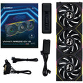 Wireless connectivity for easy installation and reduced cable clutter Addressable RGB lighting with customizable effects Integrated LCD display for real-time monitoring of system information High-performance static pressure optimized for cooling efficiency Low noise operation with a maximum airflow of 62.5 CFM Compatible with most standard fan controllers and RGB software Modular design for easy daisy-chaining of multiple fans Durable build quality with a black finish for an aesthetic look Support for PWM for adjustable fan speed control Includes a fan controller for managing multiple fans easily |