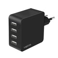 4 port USB wall charger, 4x USB-A, 24 W, black