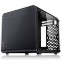 With the METIS EVO TG's innovative design, Raijintek have struck a good balance between creating the smallest possible volume and maintaining utility. This allows the user flexibility in their choice of components to fit inside while maintaining a compact exterior. New in this version are the additional fan slots. Up to two 92 mm fans can now be mounted on the rear, and either a 92 mm or even a 120 mm fan can be attached on the base. The front of the chassis can accept a 200mm, 140mm or 120mm fan. This creates an effective airflow that cools installed hardware. A CPU cooler up to 135 mm can be installed.Those who prefer water cooling, can mount a radiator up to 200 mm long in the front . Bear in mind though, in that case the length of the dual-slot graphics card is limited from a maximum of 280 millimetres to 220 millimetres.The METIS EVO TG also provides enough space to mount two 2.5/3.5-inch drives in the HDD cage under the cover. Two additional 2.5-inch drives can be mounted on the HDD cage and bottom of the case. The full-fledged ATX power supply on the rear can be replaced by a compact SFX power supply , brackets for both are included. Stable feet are located on the underside, which also ensure good noise and vibration dampening and airflow from below.