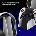 Keep your gaming gear POWERED and ORGANISED with the Snakebyte PS5 Combo Charge, capable of charging one DualSense or DualSense Edge controller and a wireless headset simultaneously.